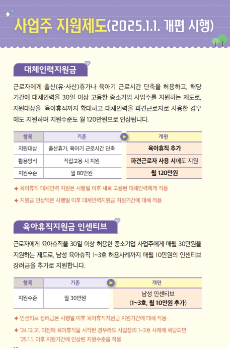 ✅ 대체인력 지원금 (2025.1.1 시행)