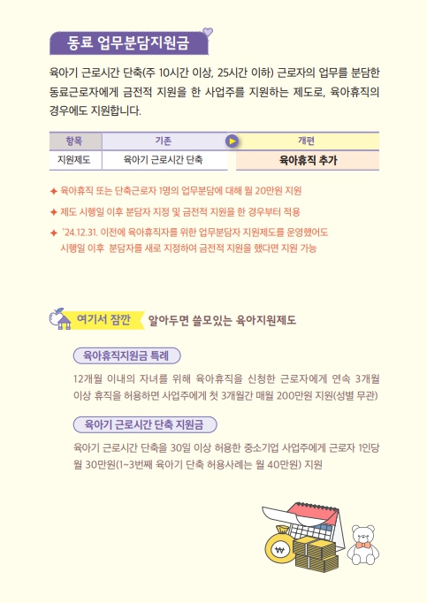 - 육아휴직·육아기 근로시간 단축 근로자의 업무를 분담한 동료에게 금전 지원