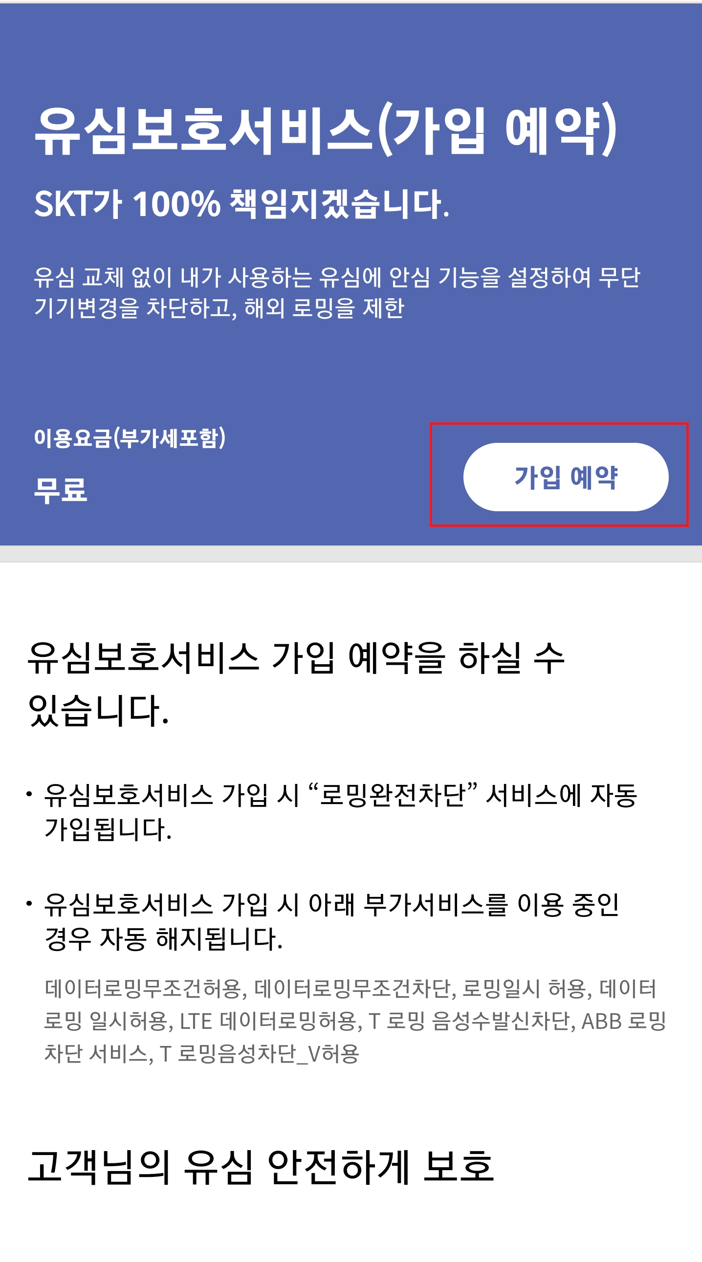 👉 유심보호서비스 가입 안내 (SKT)