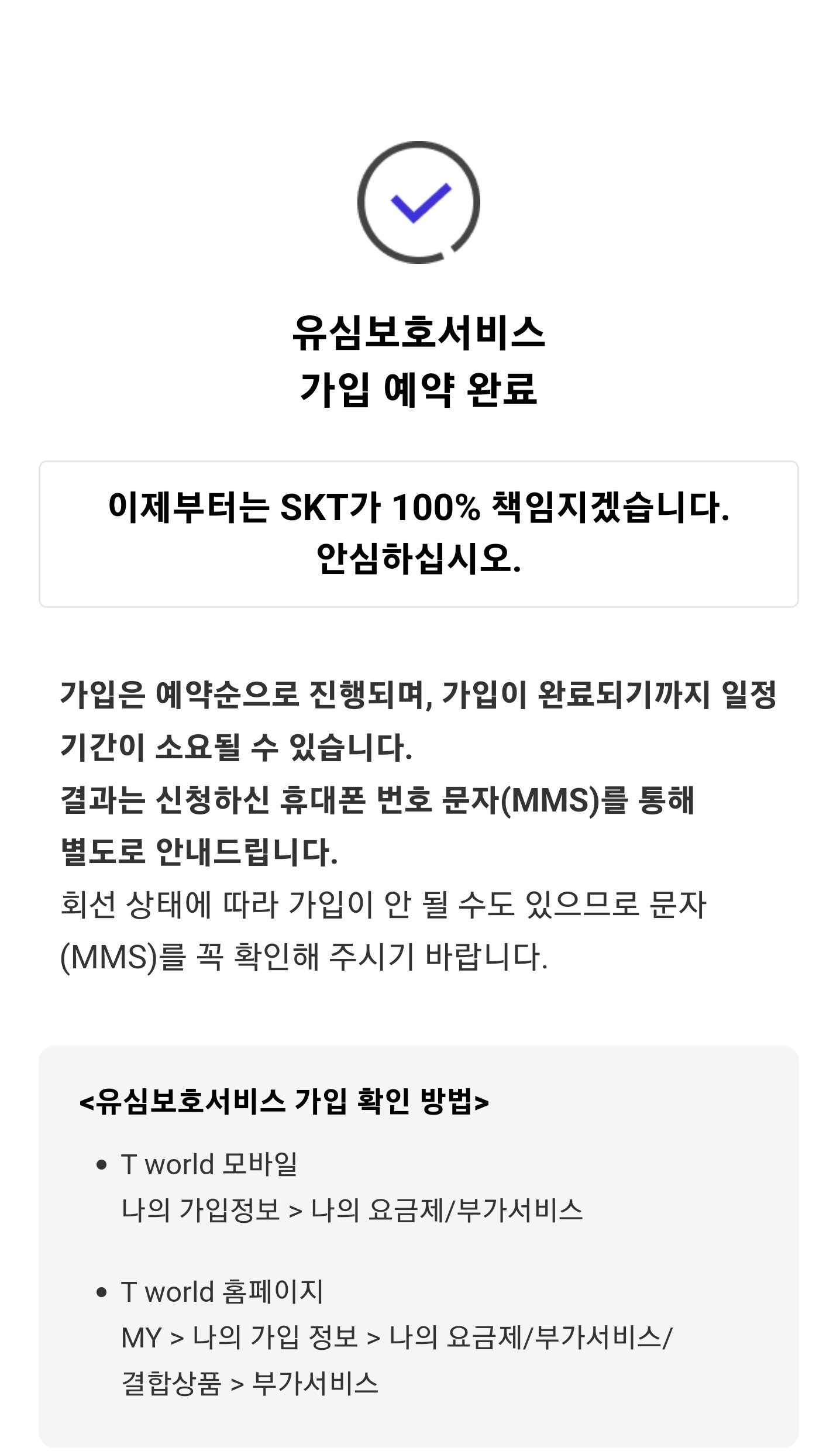 - 피해 발생 시 100% 보상: 유심 도용으로 발생한 통신요금 등에 대해 SKT에서 100% 보상.