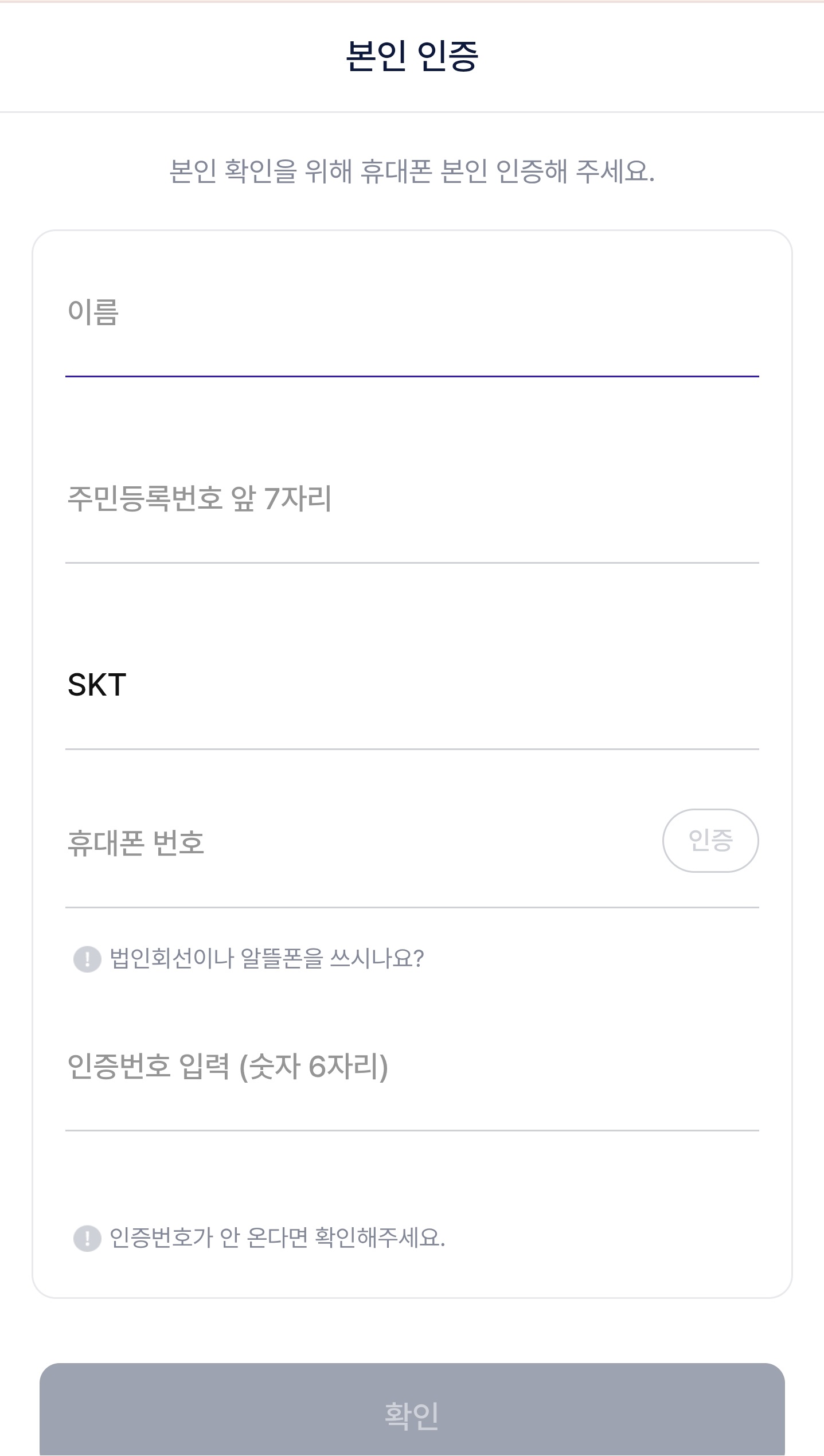 - 본인 인증을 통해 서비스 즉시 적용