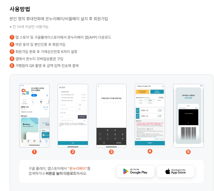 - 구매 방법: 앱에 가입 후 상품권 구매 페이지에서 금액을 선택하고 결제하면 QR코드 형태로 상품권이 발급됩니다.
