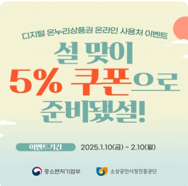 설 명절 디지털 온누리상품권 할인 혜택 총정리: 최대 35% 할인 및 환급 이벤트 안내다가오는 설 명절을 맞아 중소벤처기업부는 소비자들의 물가 부담을 줄이기 위해 1월 10일부터 2월 10일까지 디