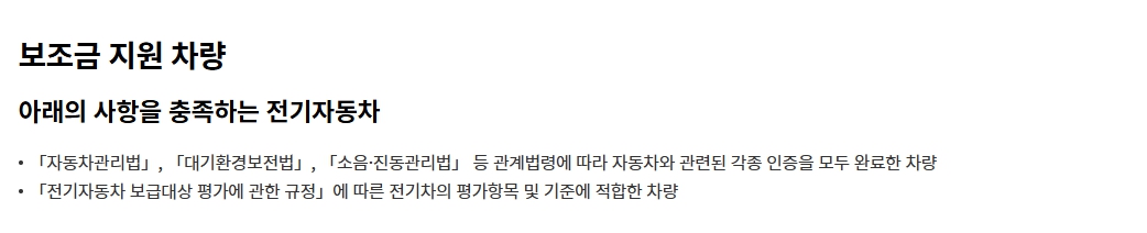 - 보조금 전액 지원 차량의 가격 기준 강화