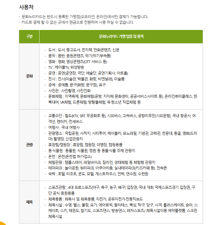 문화누리카드는 전국 3만 2000여 개 가맹점에서 사용할 수 있으며, 다음과 같은 다양한 문화 혜택을 제공합니다.